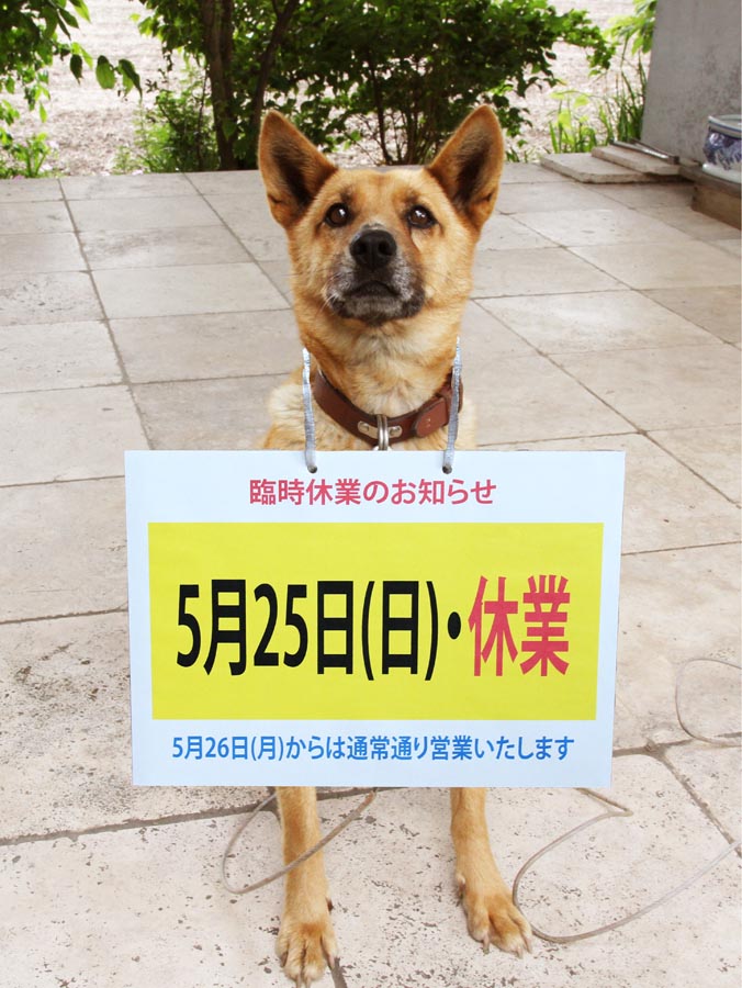 5月25日(日)は臨時休業です。 コメントを残す 都合により5月25日の日曜日は臨時休業とさせて頂きます。愛犬タロはお客様のお相手が十分出来ないと思いますのであしからず・・・・・26日(月)からは通常通り営業いたします。なおギャラリーのスケジュールはホームページトップのカレンダーにてご確認くださいますようお願いします。