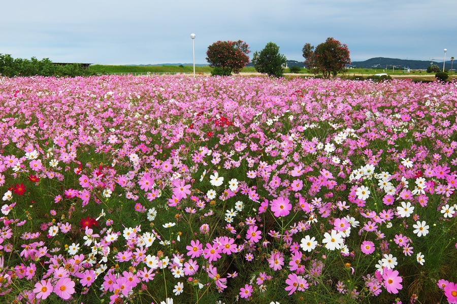 岡東浄化センター敷地内に約3,000 平方メートル、3 万本のコスモス畑があります。毎年9 月下旬から10 月上旬に見頃になり、平日は一般開放をしています。石原田園ギャラリーから2キロちょっとです。今年9月に開通した外環状線のおかげで、わがギャラリーからのアクセスが大変便利になりました。みなさまお揃いでおでかけ下さいね。