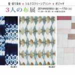 涼しさが吹き抜ける布の競演・・・「3人の布展」。 藍・絞り染めのタペストリーや、シルクスクリーンプリントのおしゃれな綿・手ぬぐい、窓辺を優しく彩る麻のポジャギ作品たち・・・ それぞれ違った技法の3人の作家による布作品が一[…]