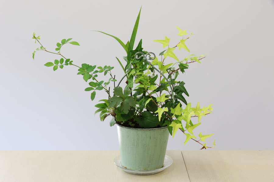 バラ、ヘデラ、春咲しゅうめい菊、シラン、都わすれ、うつぼ草、ほか。