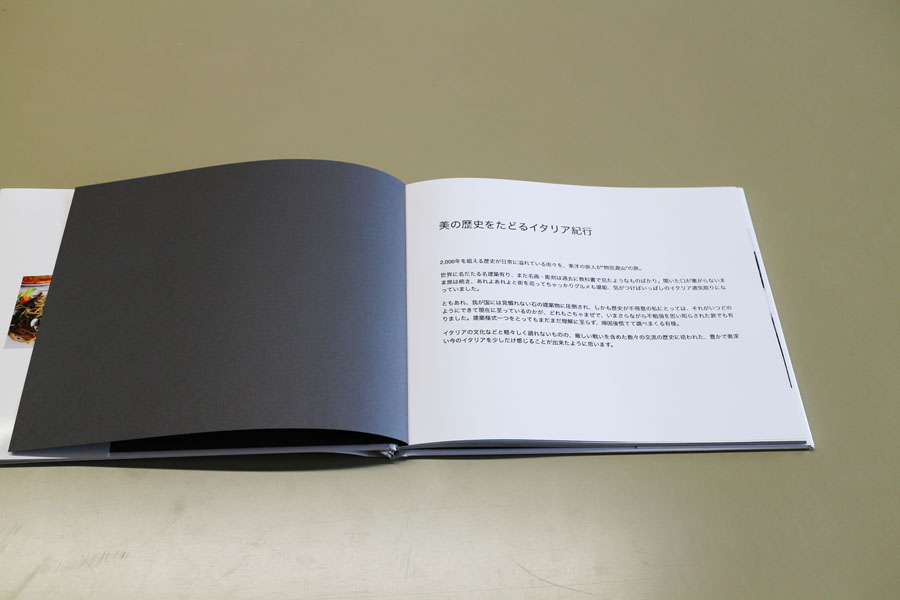 イタリア旅行の写真集を制作しました。 コメントを残す 昨年暮れのイタリア弾丸ツアーの写真集を作ってみました。Macに入っている写真アプリでレイアウト、ネットで申し込んで中3日位で送られてきました。サイズはほぼA4で横長、ハードカバーで立派なものです。自己満足に浸っています、もちろん逢う人遭う人見せまくっています。(笑) 関連記事新春、快晴の田園ギャラリーです。陽気に誘われて葉わさびを探しに出かけました。新銘柄コーヒーを煎りました。朝露が輝いています。カワズザクラで春が来る。大阪方面からの旧友来訪あり。