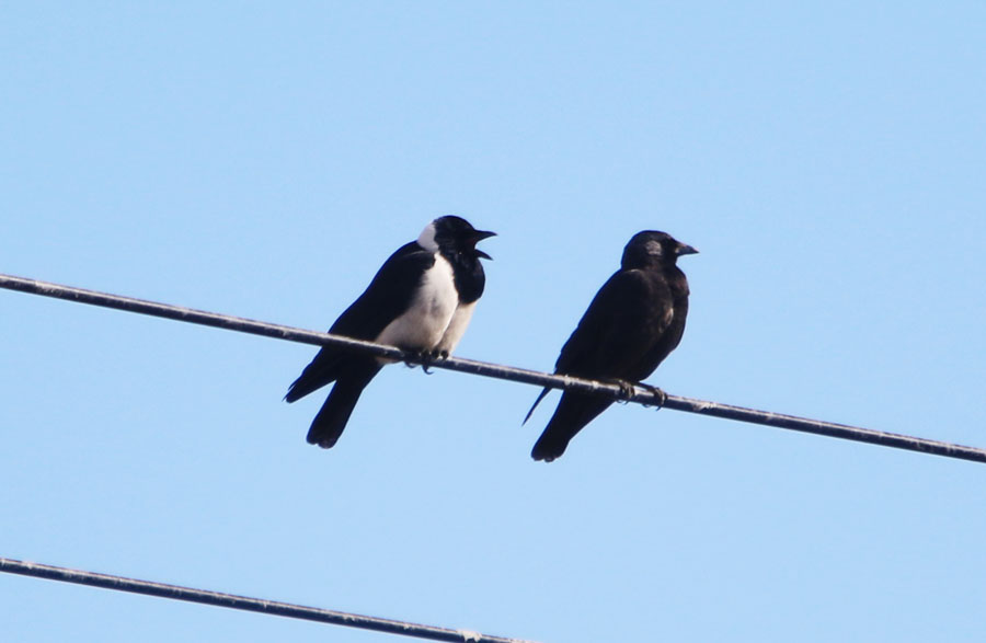 コクマル・ガラスの飛来地ポイントで脚光。 コメントを残す 最近遠くからコクマル・ガラスの写真撮影と称して多くの方が我が田園地帯へおいでになっています。今日も何人か田園地帯にカメラを向けています。私も便乗して近くの電線にハシボソ・ガラスと仲良くとまっている姿を撮影しました。 関連記事珍しいカラス?かな?(コクマルガラス)中野由紀子さんのガラスが揃っています。中野由紀子さんのガラスが揃っています。近くの水田にカルガモらしき家族?ギャラリーも梅雨入り、2人展開催中です。切り絵とガラスの展覧会展示中。