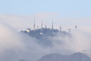 穏やかな新年となりました。児島湾の向こうに見える金甲山に天空の城?