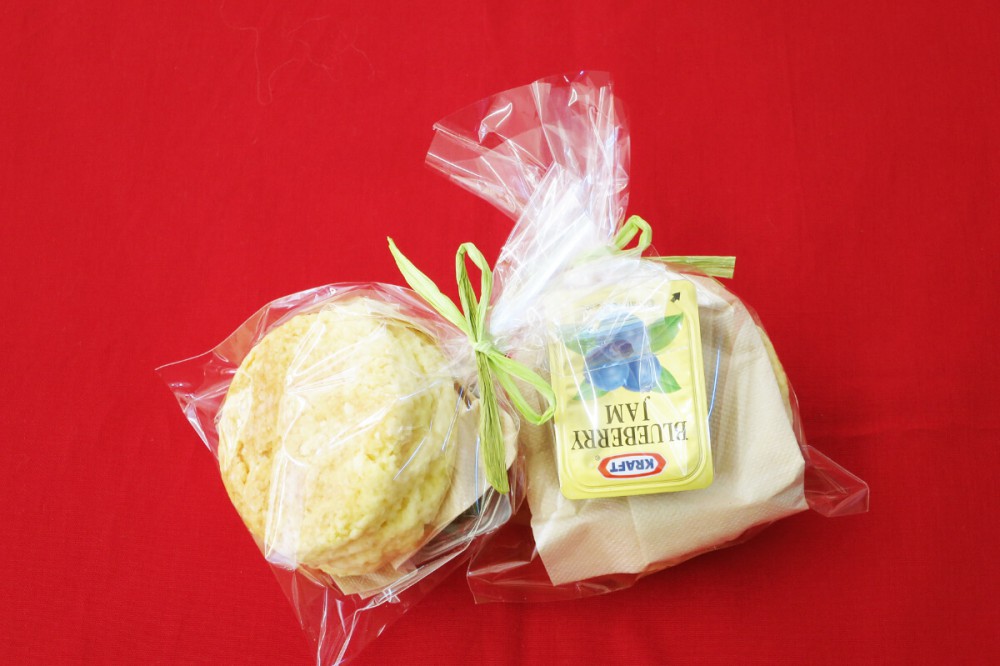 石原田園ギャラリー特製の自家製スコーンにブルーベリージャムをつけたパッケージをつくりました。