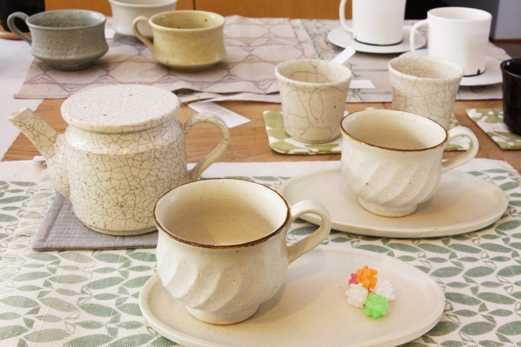 お茶の時間展 2015終了 2015年1月23日(金)〜2月3日(火) (水曜日・木曜日は休み) カップやプレートはもちろん、おしゃれなティーコゼやマットなど、さりげない心づかいを応援してくれる小物たちが集合しました。 《出品作家名》 アトリエ求里畝 神山結子 林淳子 三宅史家 山内厚可 ほか 林淳子さんの器 神山結子さんのティーコゼとマット 三宅史家さんのカップ アトリエ求里畝のミシンヌビ 山内厚可さんの備前焼 投稿ナビゲーション ← 田園ギャラリーのクリスマス市 2014 シルクスクリーン版画展 → ひとつ前のページに戻る