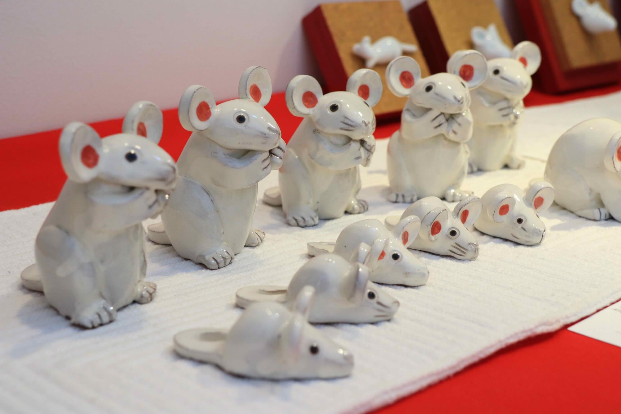 また、お正月用には来年の歳神様のかわいいネズミの置物や、一つあると便利な器も並びます。