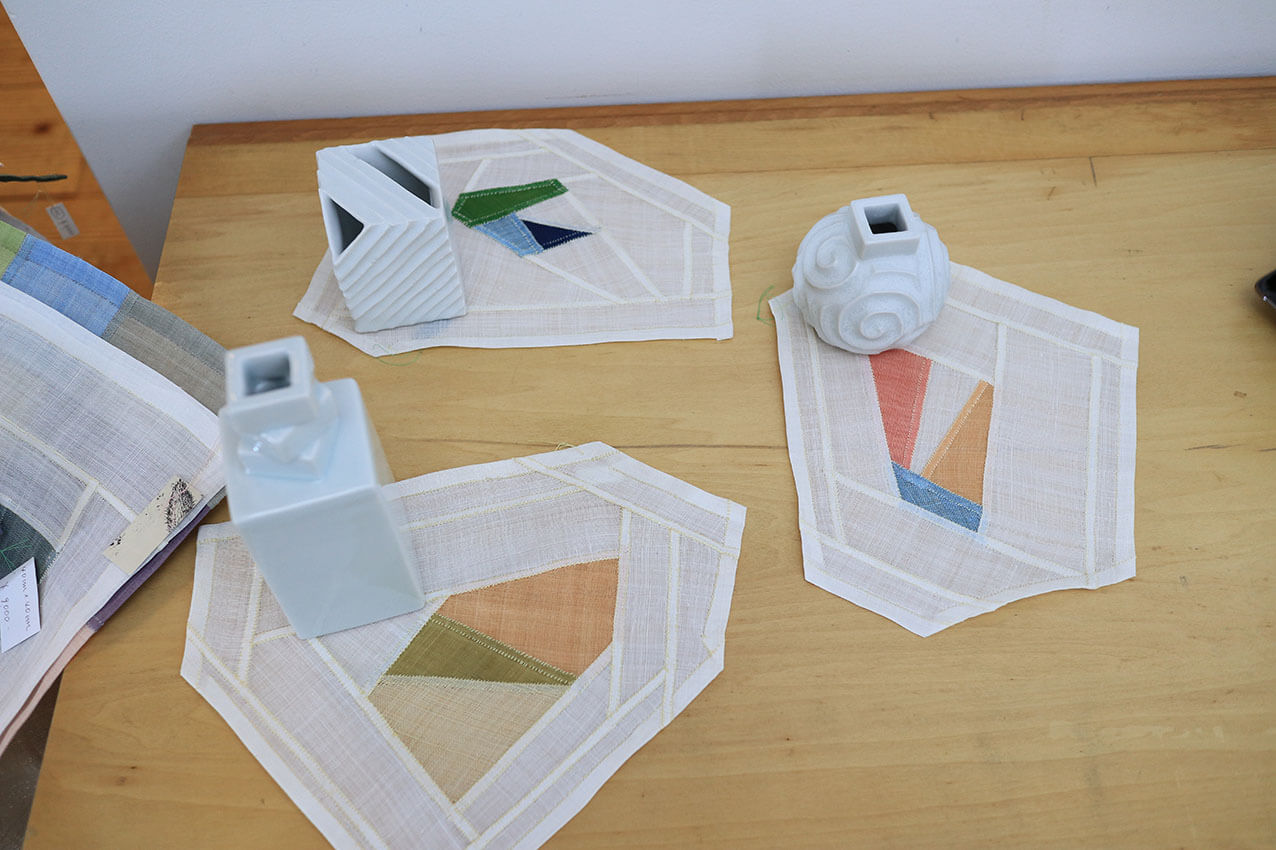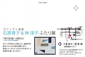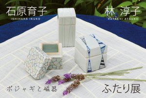 透ける麻でつくった石原育子のポジャギと、涼しげな柄の林淳子の磁器の展覧会です。