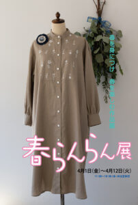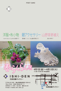 長びくコロナ禍の中で3度目の春を迎えます。少しでも前向きに気分をアップできるように3人の作家さんの作品を展示します。