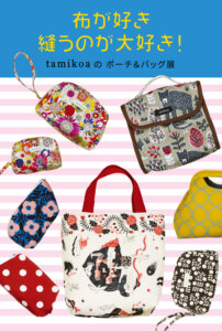 tamikoaのポーチ&バッグ展終了 2024年10月18日(金)〜10月29日(火) (水曜日・木曜日は休み) これまでたくさんの布小物や洋服を縫ってきたtamikoa山本由美子さんは、いつも楽しそうに縫っています。その楽しさはやはり使ってくれる人たちの笑顔を思いながら縫っているからに違いありません。今回、tamikoaの最新作の中から特に明るくて、使い勝手の良さそうなポーチやバックを中心に展示いたします。 展示はポーチやバッグを中心に、他の布小物や洋服もあります。 すべて一点もので、販売いたします。 総点数は約70点を予定しています。 投稿ナビゲーション ← 石原 清 水彩画展2024 林 淳子 陶板展 → ひとつ前のページに戻る