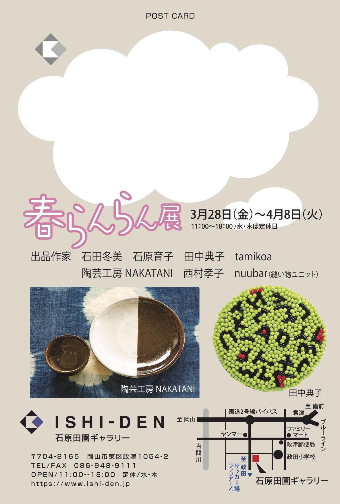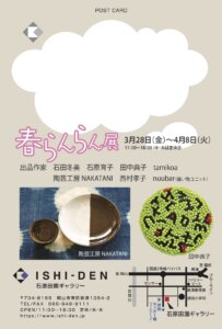 石原田園ギャラリーでは、春の訪れを感じる企画展「春らんらん展」を開催いたします。今回は、「暮らしのなかで身に付けたり、身近に置いて楽しめる」作品展として、個性豊かな作家たちによる多彩なアイテムが揃います。