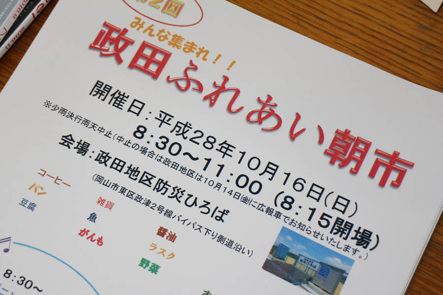 10月16日(日) 「政田ふれあい朝市」に出店!ギャラリーは13時から。 昨年に続きギャラリーから北へ800メートル、2号線バイバス沿いの会場で朝8:30から営業します。我がギャラリーとしては自家焙煎のコーヒーをメインで提供します、皆様お揃いでお出かけください。他にも色んなショップが出店します。 この日ギャラリーは 13:00から営業です ご注意くださいね!