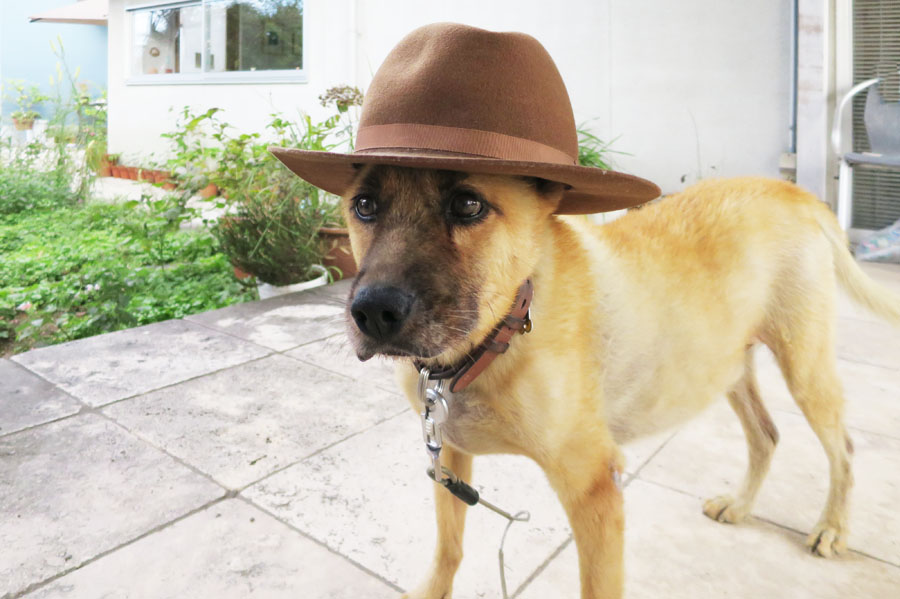 この帽子は昔映画がヒットした頃私が買っていてあまり使っていなかったモノですが、意外とタロに似合いますね〜。
