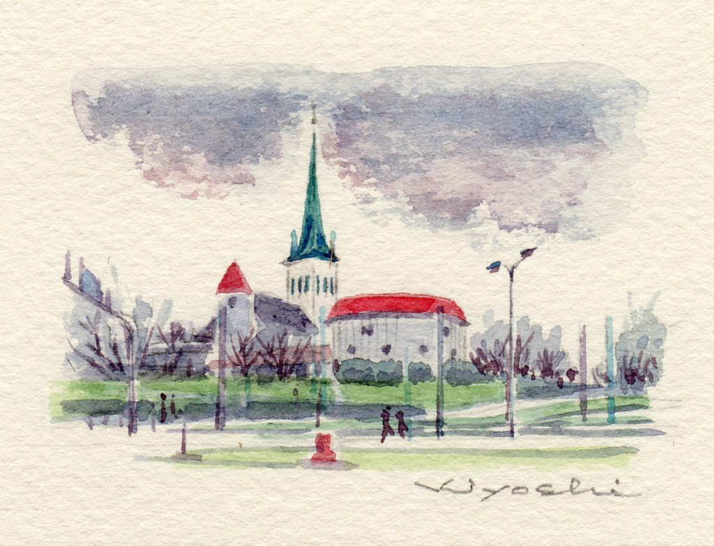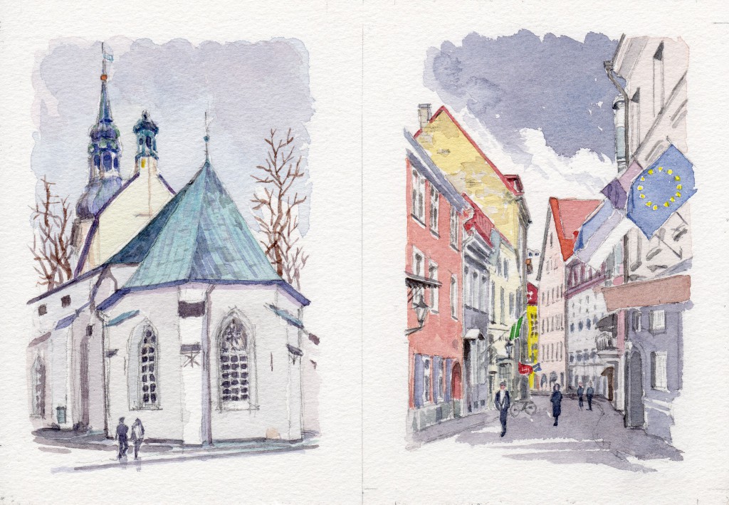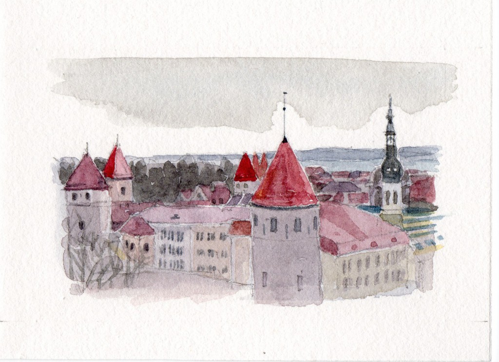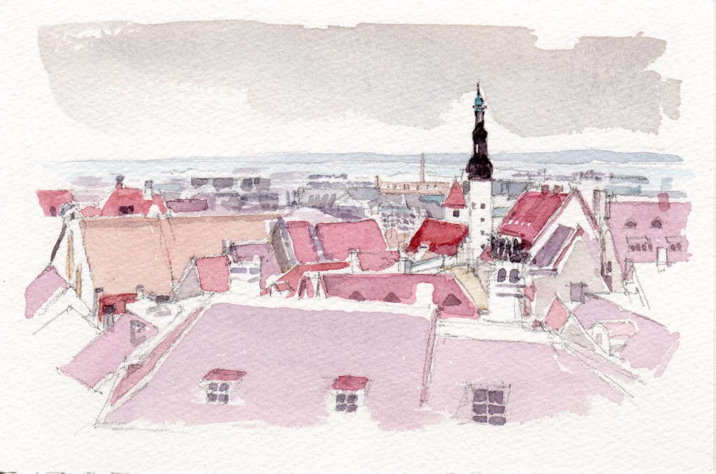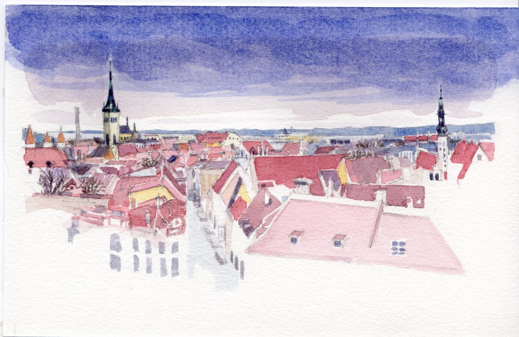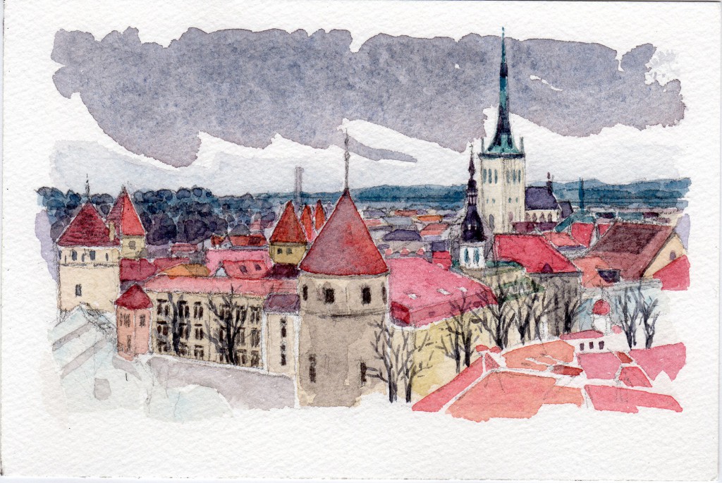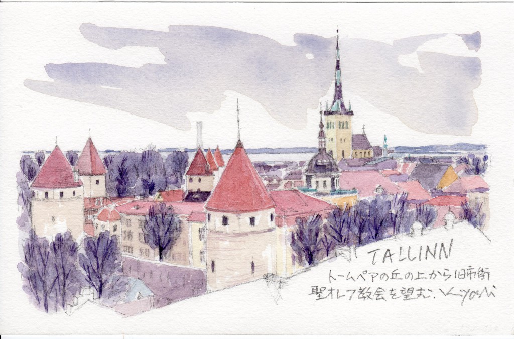 壁面やデスクサイドに置いて気楽に楽しめる「石原清の水彩画」、今回は昨年訪ねたバルト海沿岸の古い街タリンを中心に描きました。