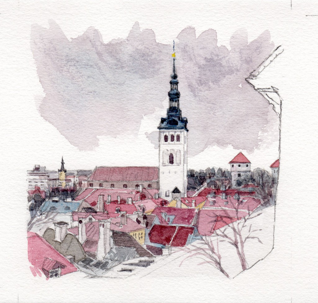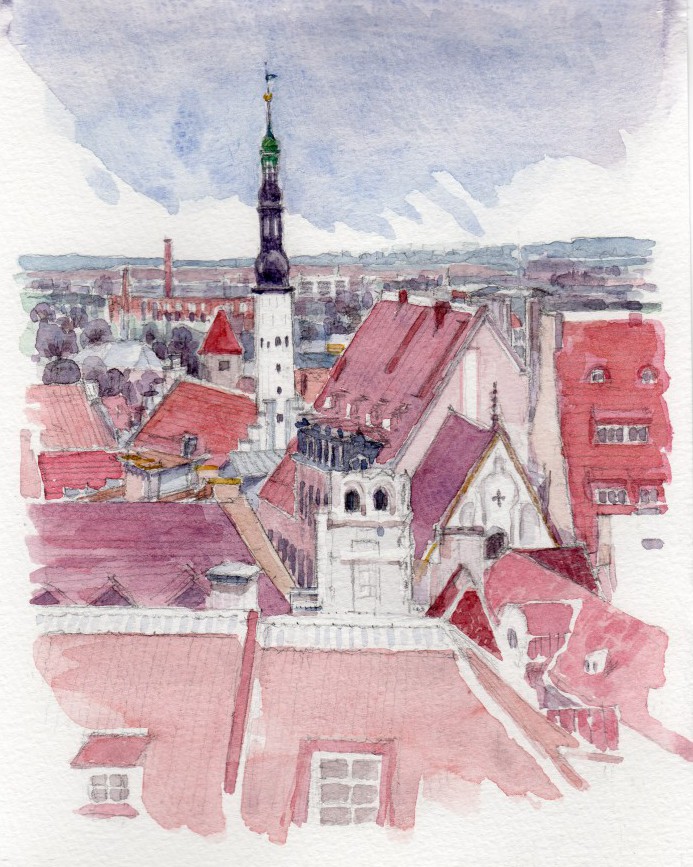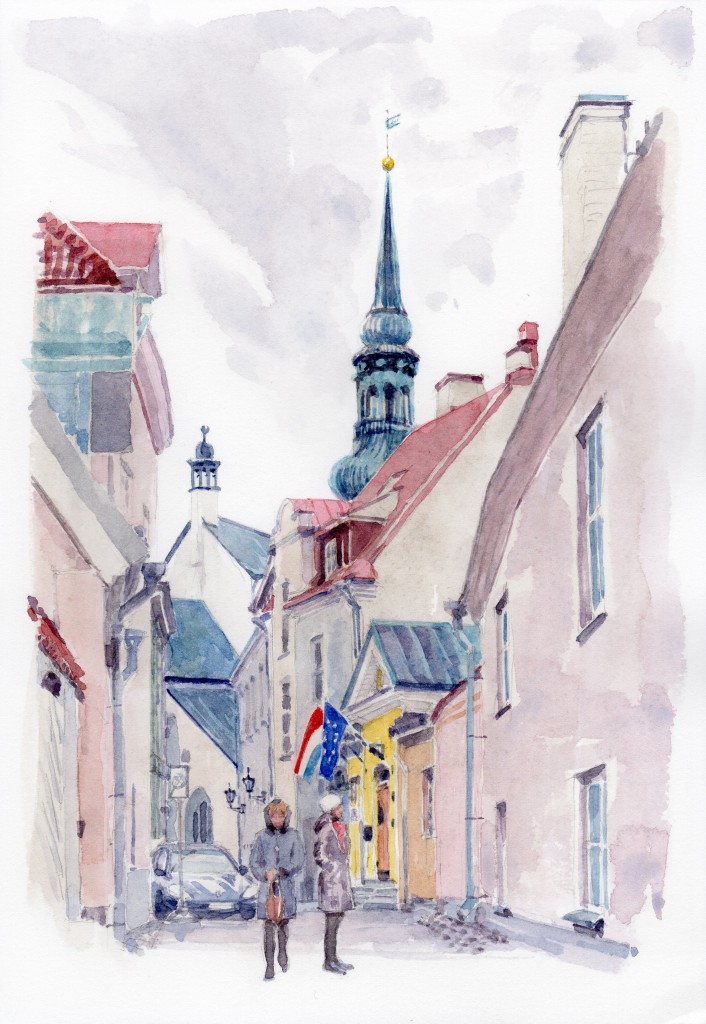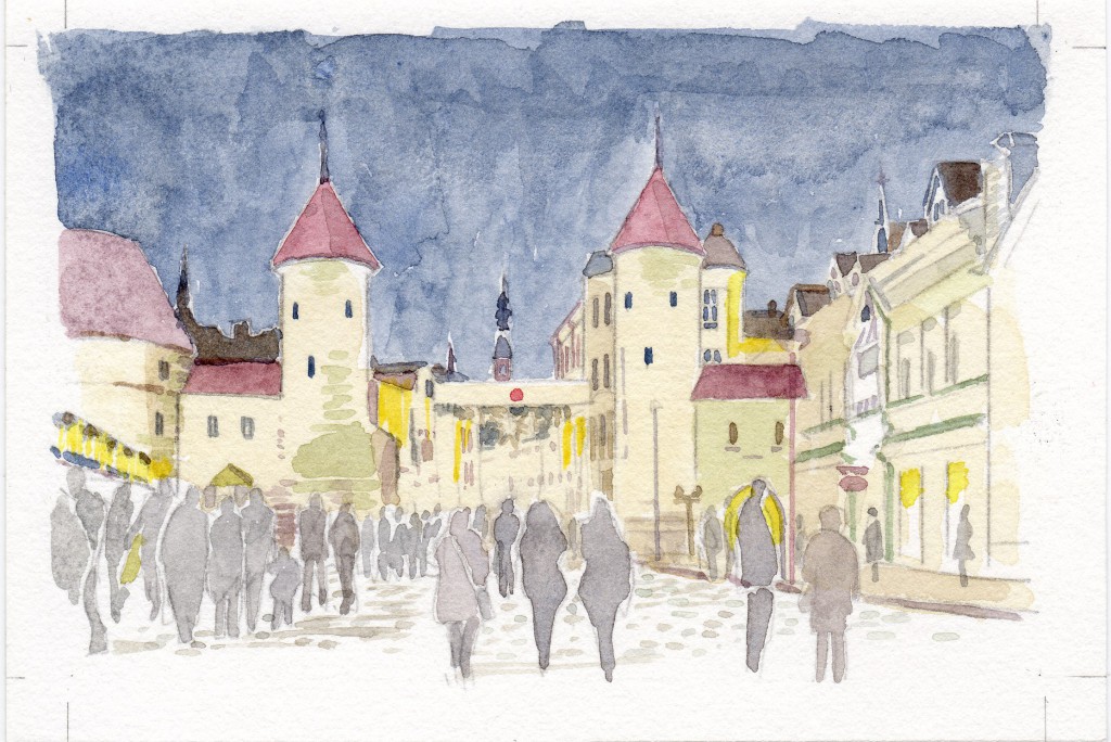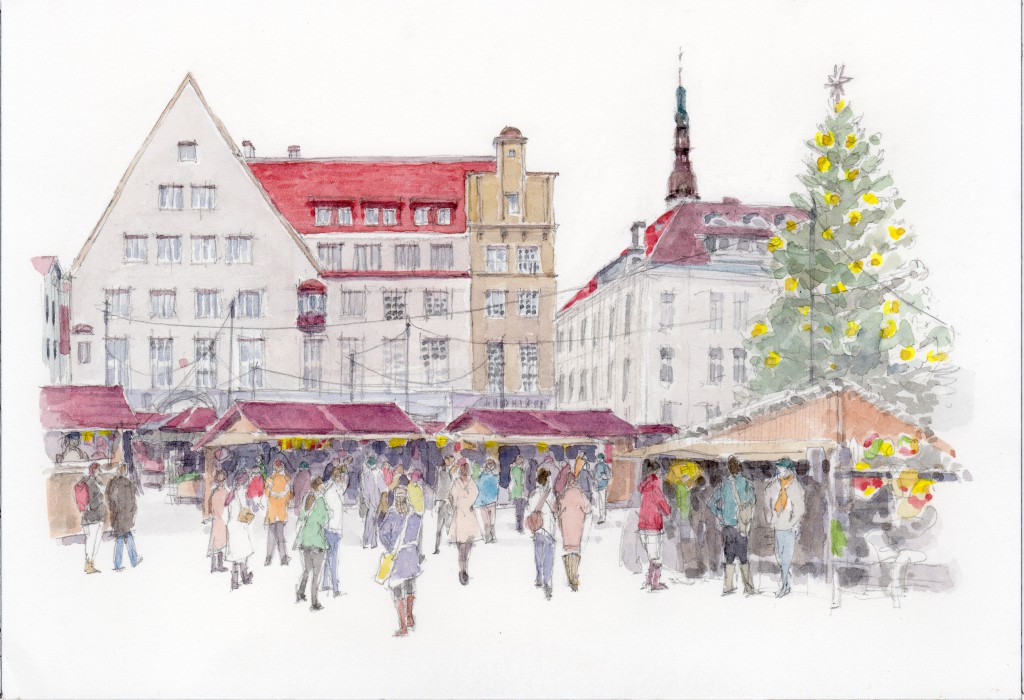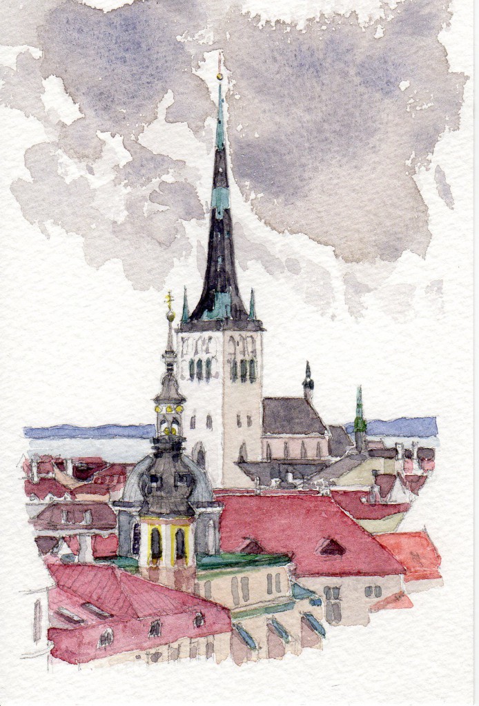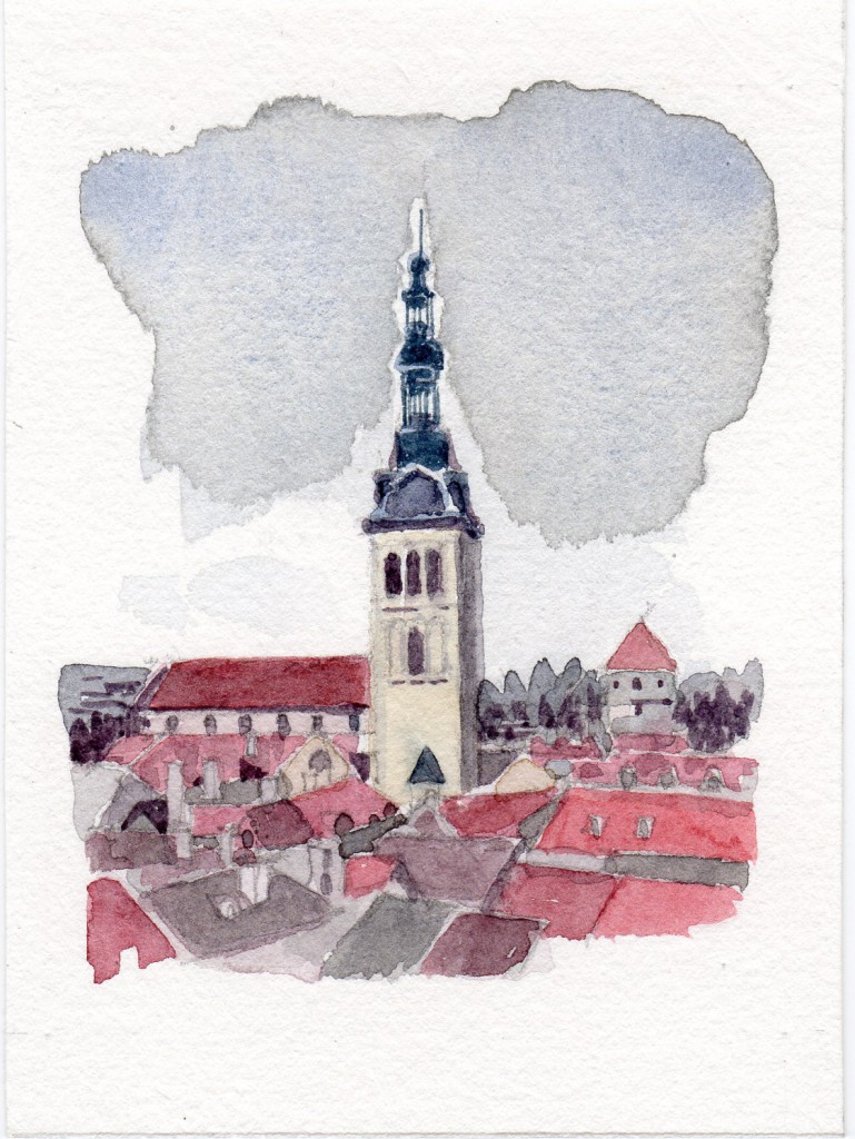 壁面やデスクサイドに置いて気楽に楽しめる「石原清の水彩画」、今回は昨年訪ねたバルト海沿岸の古い街タリンを中心に描きました。