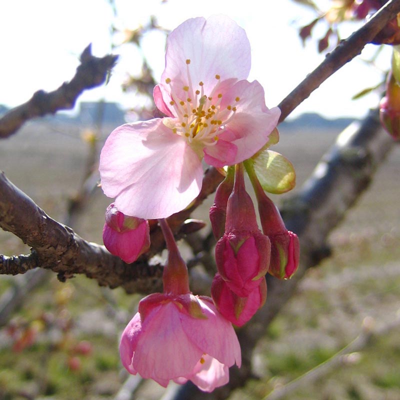 ここのところの冬の気候がやっとおさまり、春めいた日ざしが戻ってきました。風のかげになる東側の陽だまりには例年より遅いカワズザクラが咲きました。
